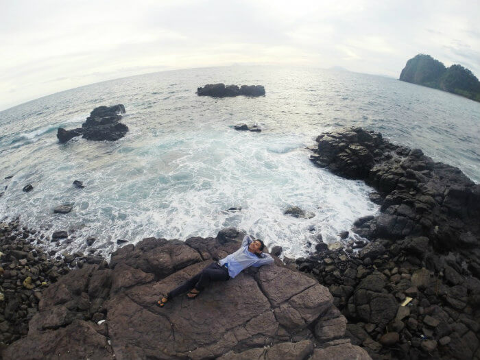 Tak ketinggalan, biasanya, guide akan mengantarkan anda ke area sisi tebing pulau sangiang. dan dari tebing tersebut, anda bisa melihat debur ombak di kejauhan, yang memecah karang di pinggir pulau sangiang.